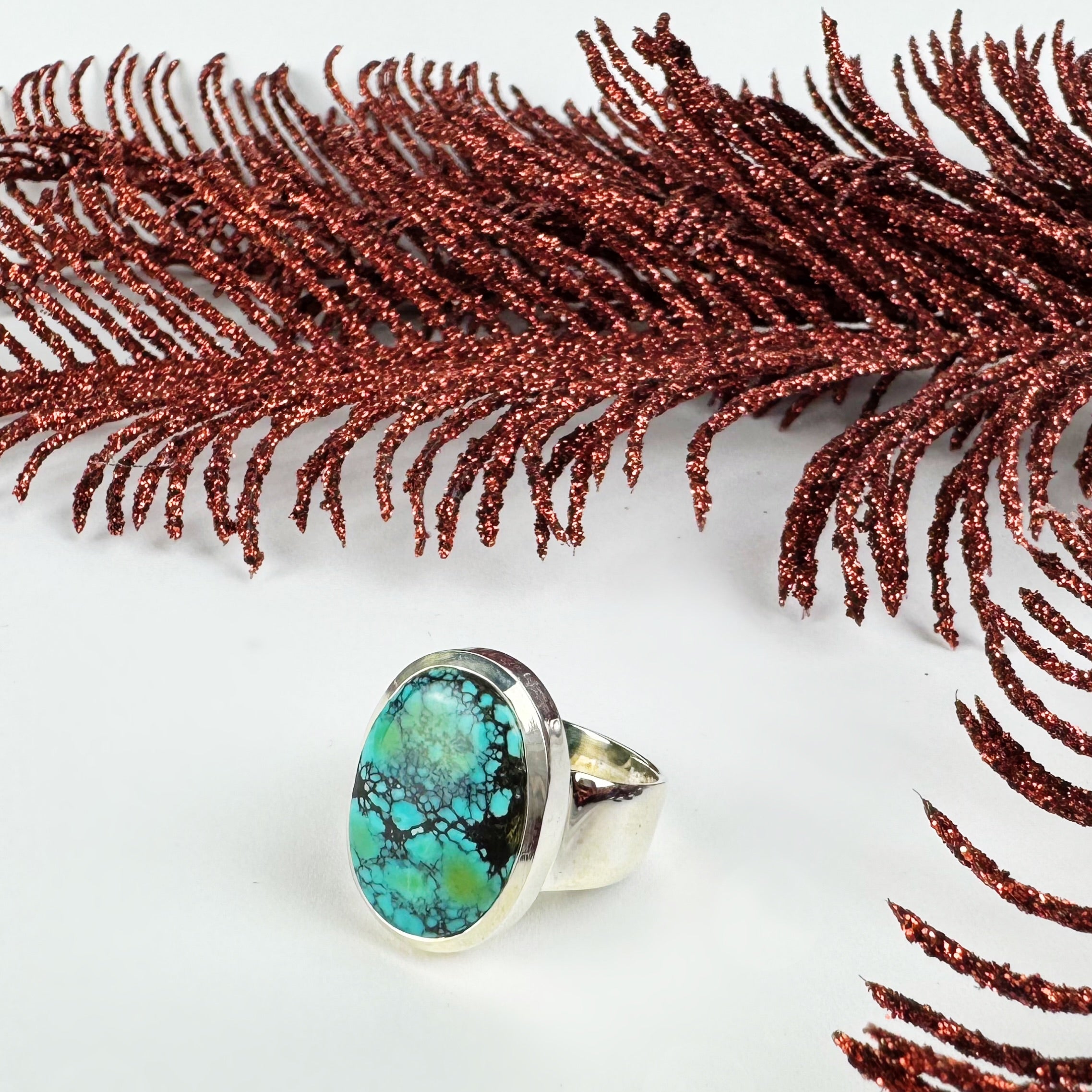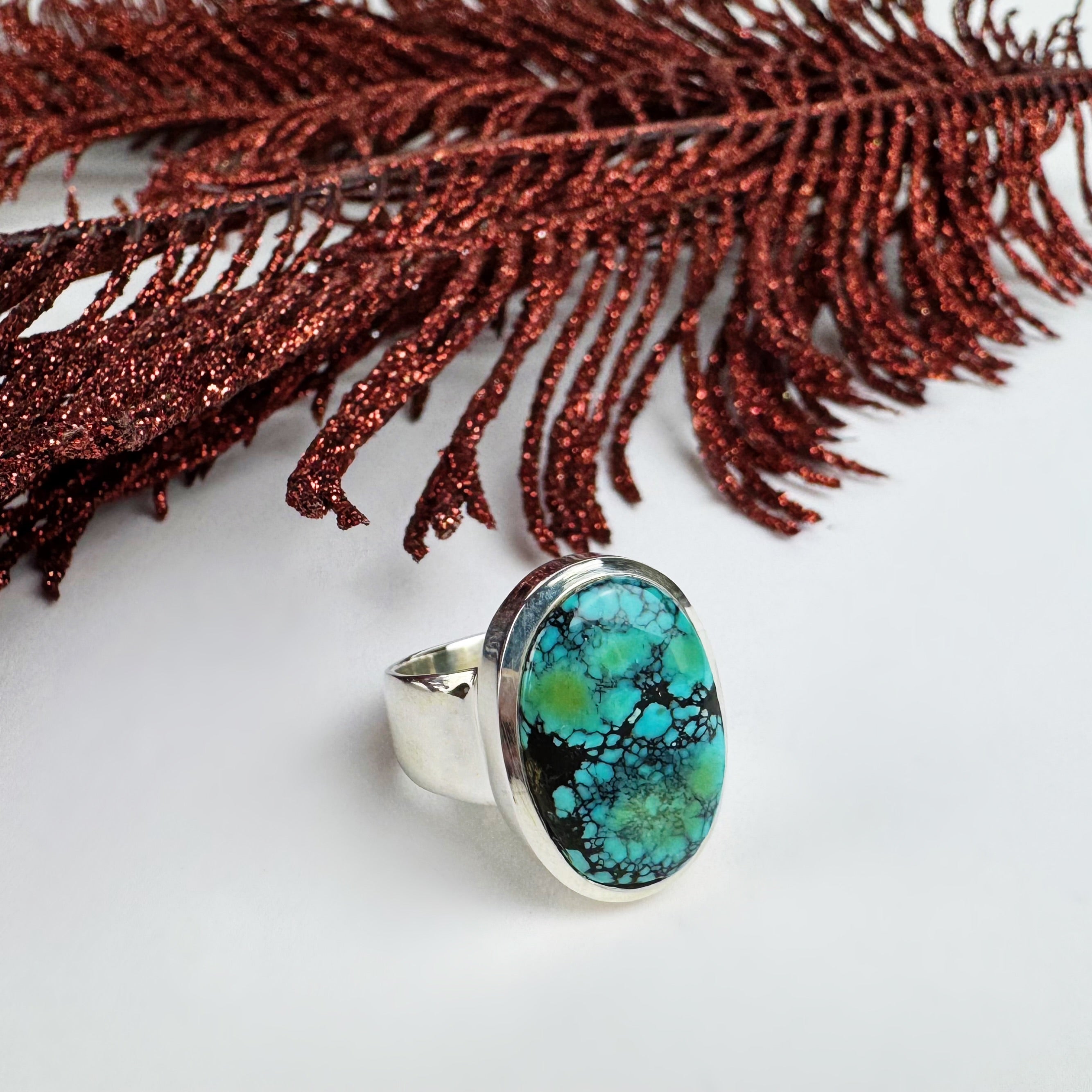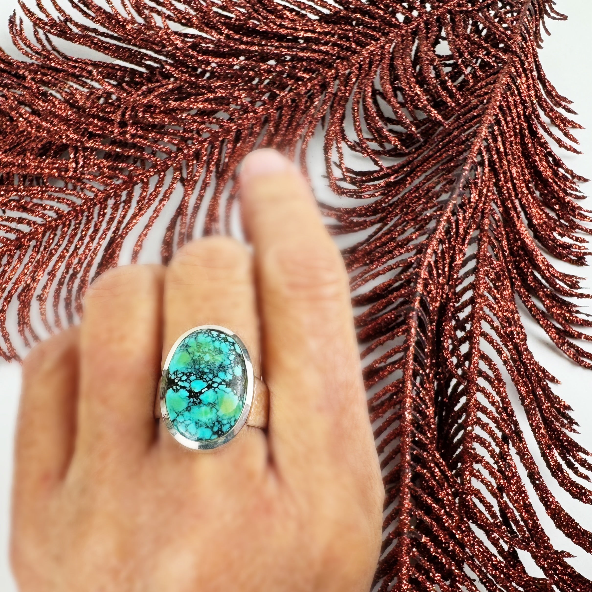 This unique & One of a Kind, polished oval of natural Turquoise reminds us vistas where the mountains meet the skies. Be naturally inspired when you wear this gorgeous Silver ring design.