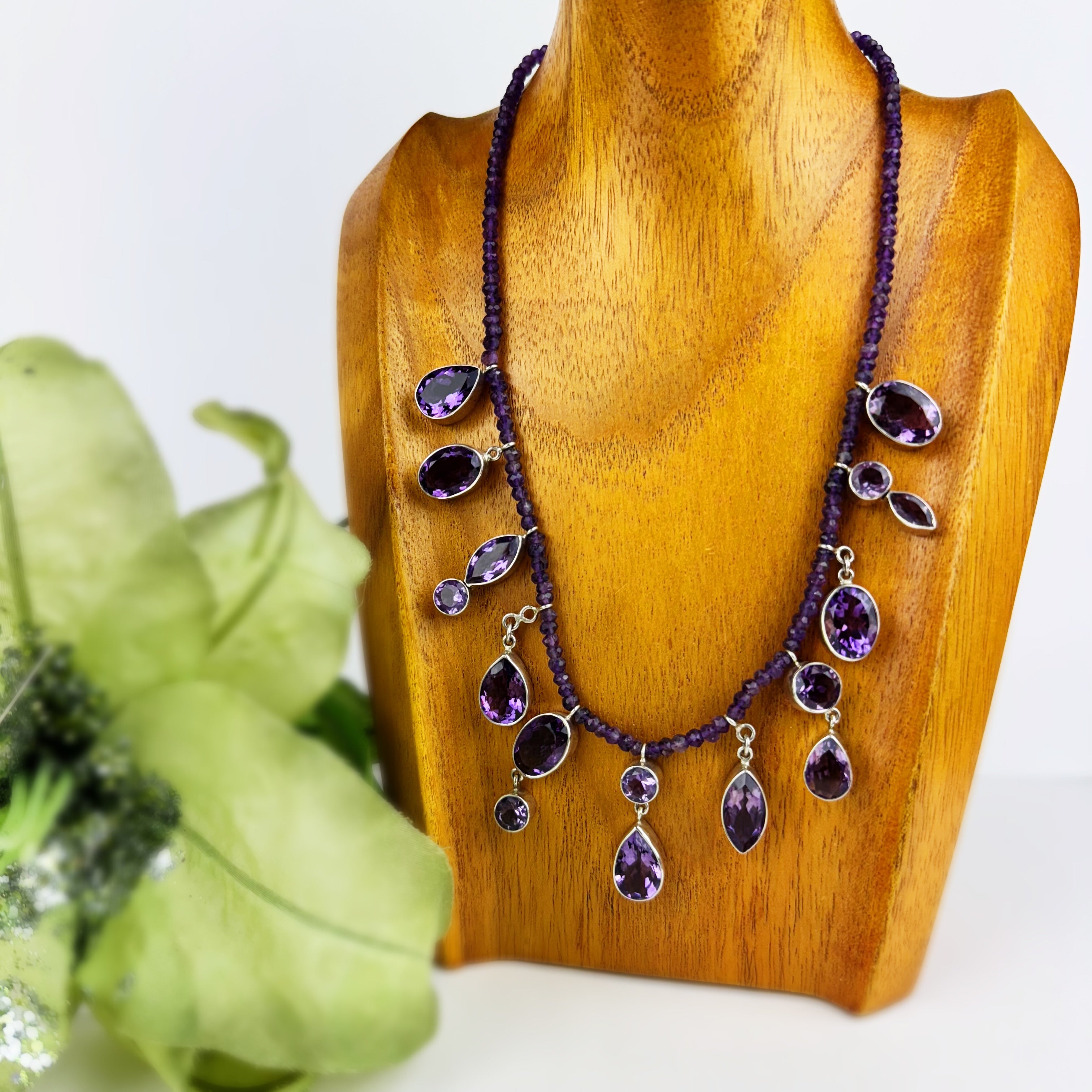 Irresistibly delicious! This violet toned faceted Amethyst & Silver necklace on a string of sparkling Amethyst faceted beads will have you drooling for every occasion to wear it...