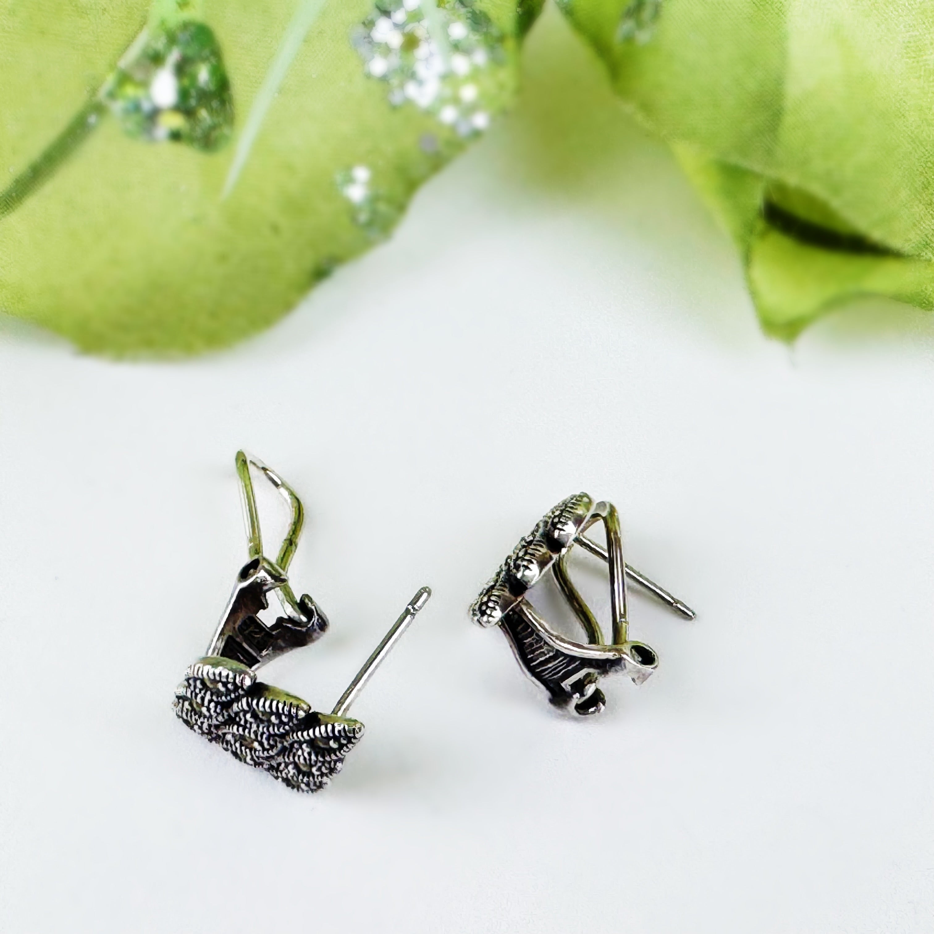 Set with faceted Marcasite stones, these unusually shaped Silver earrings have a vintage clip stud fastening & a fabulous sparkle for a look that looks fabulous for special occasions by day & by night.