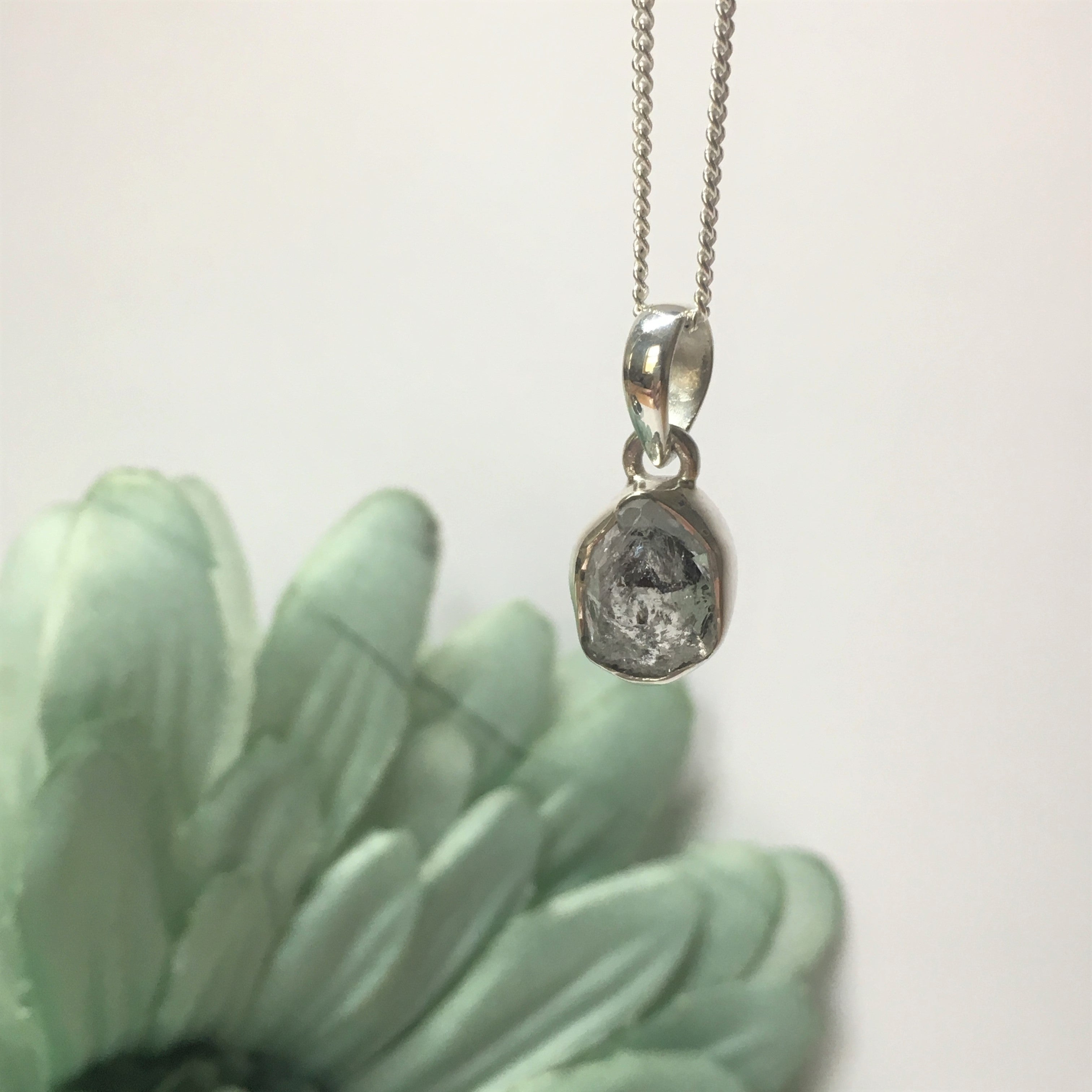 Wear this unusual shaped, Silver set, Herkimar Diamond stone pendant close to your chest for some icy sparkle.