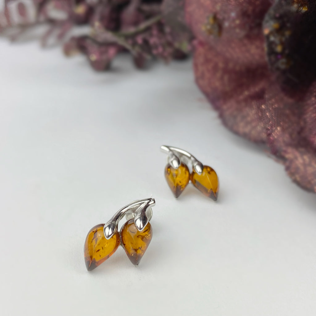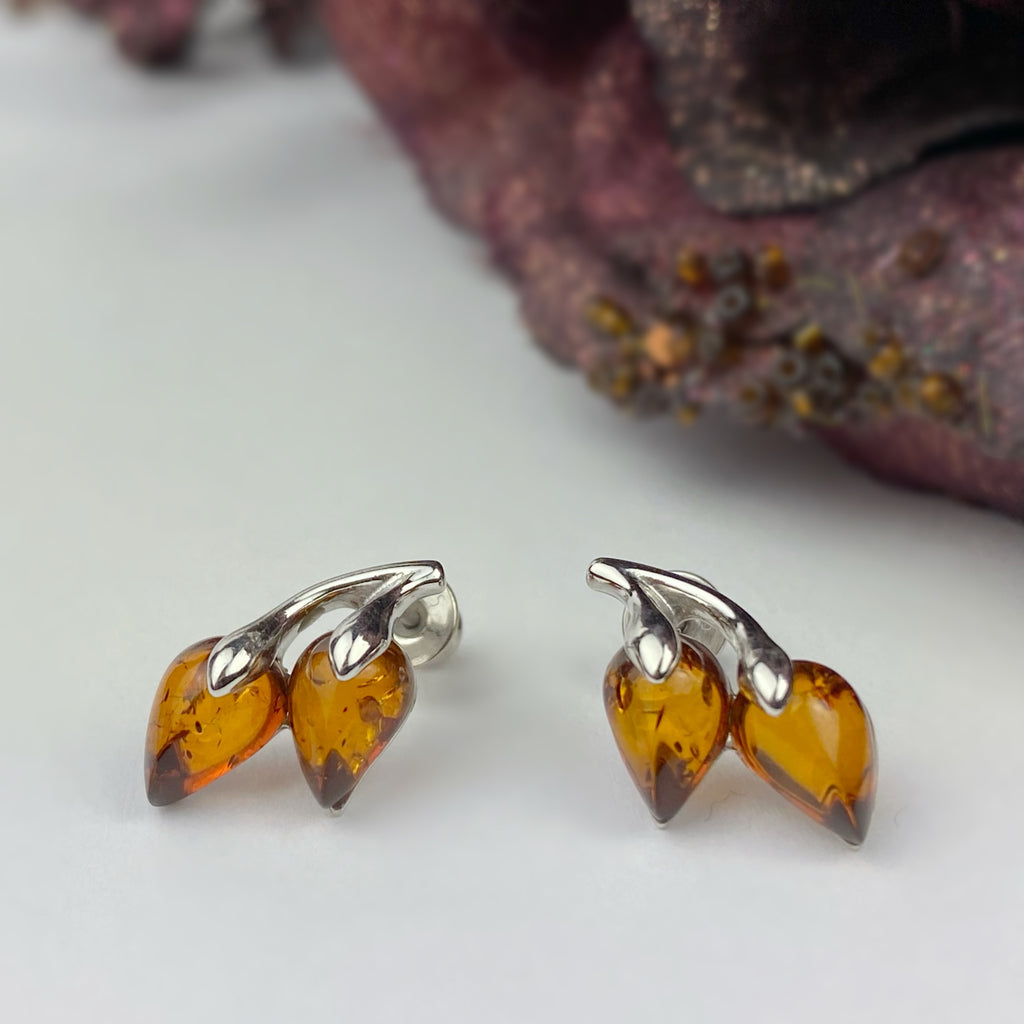 Two stones of warm honey coloured Baltic Amber set in Silver wait to bloom at your lobes when you wear this gorgeous stud earring design.