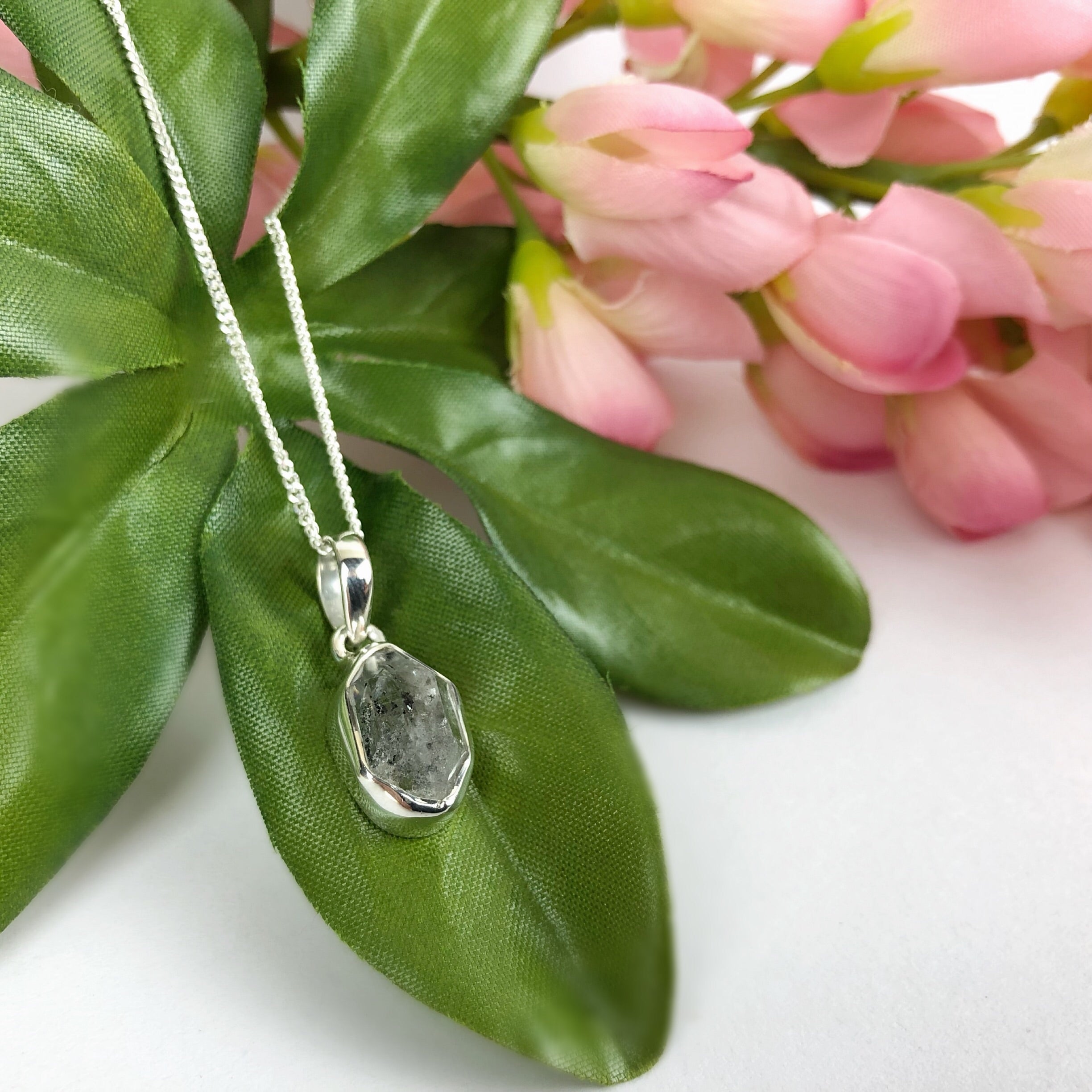 Unique, faceted Herkimar Diamond to wear around your neck for a frosted look, this natural stone & Silver pendant is a great dress up or down addition to your outfit.