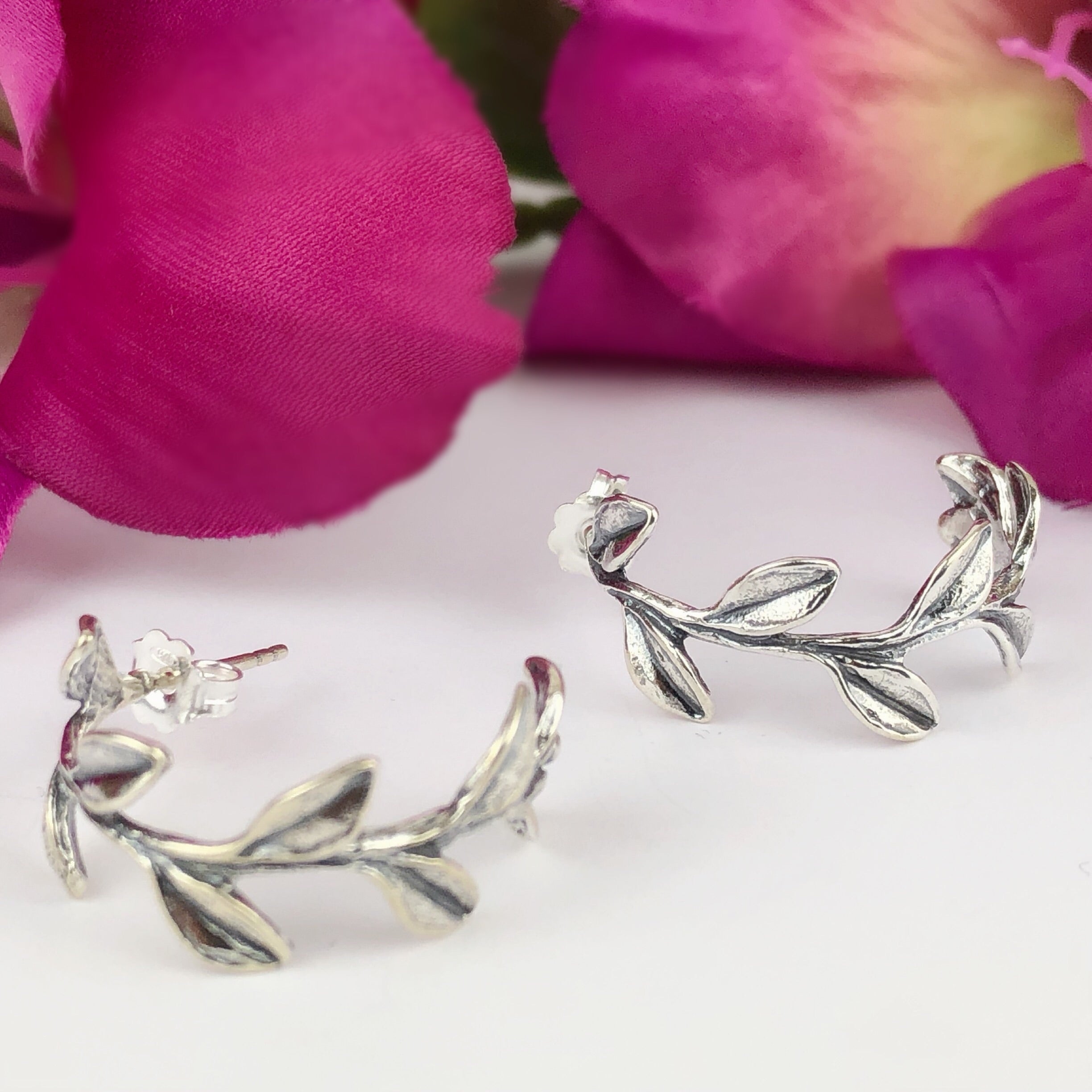 Wear these curling Silver leaves for a hoop earring design with a natural touch.