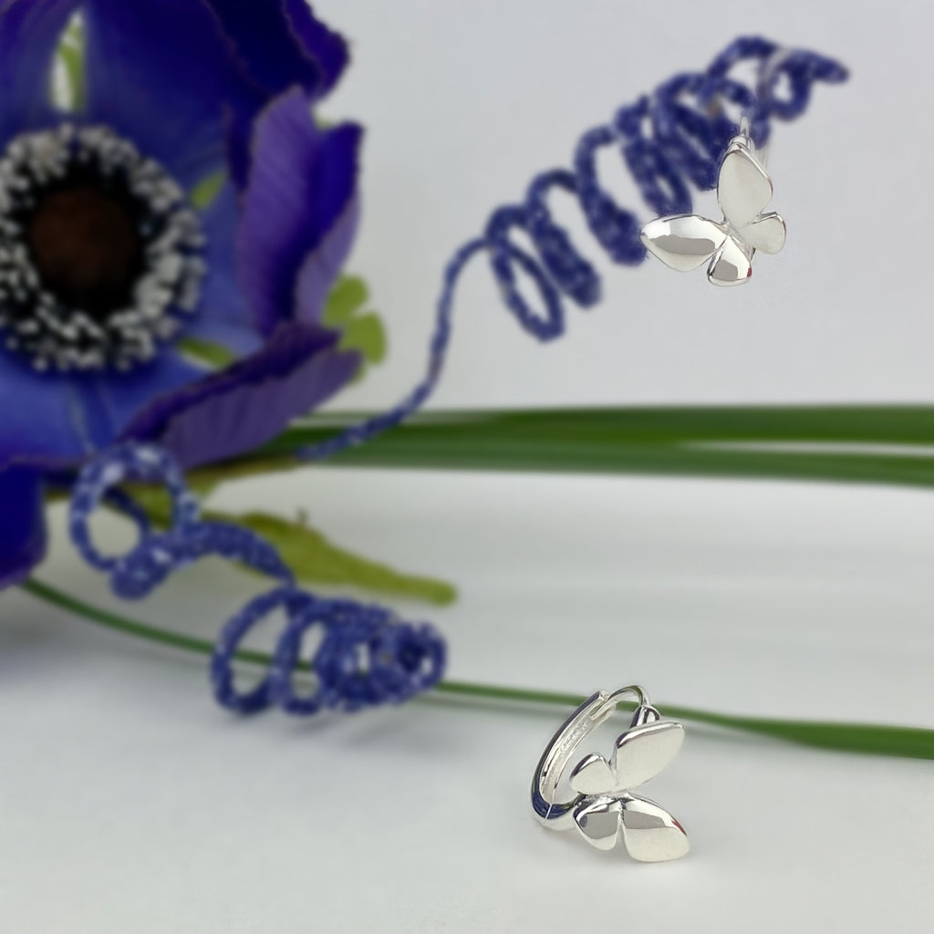 Meaning 'little beauty,' the name of these lovely Silver hoop earrings could not be more apt & with the pretty butterfly design perched at an angle. Watch their wings catch the light & wear a Summers day year round.