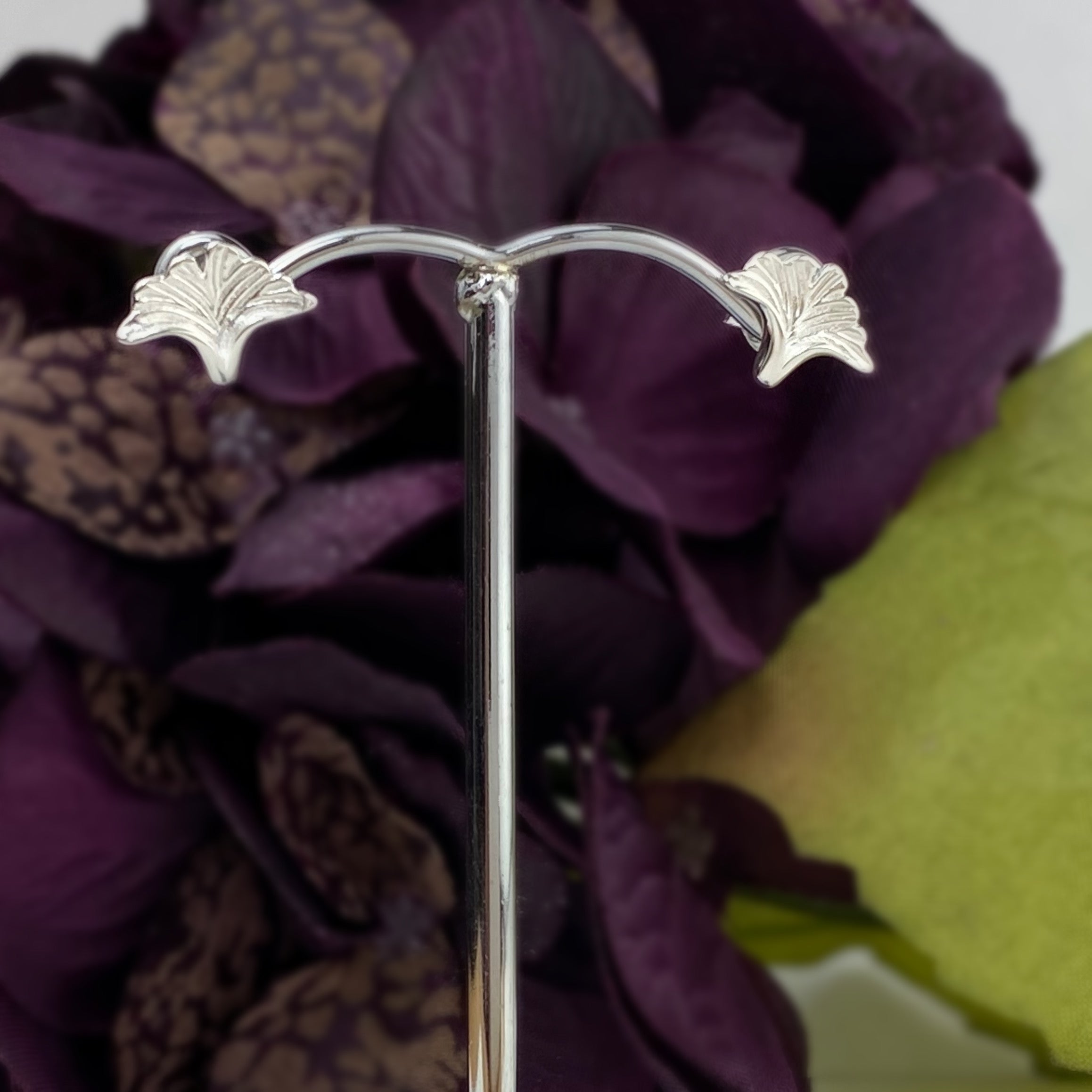 Wear these Silver fan shaped stud earrings for a floral Art Nouveau flair.
