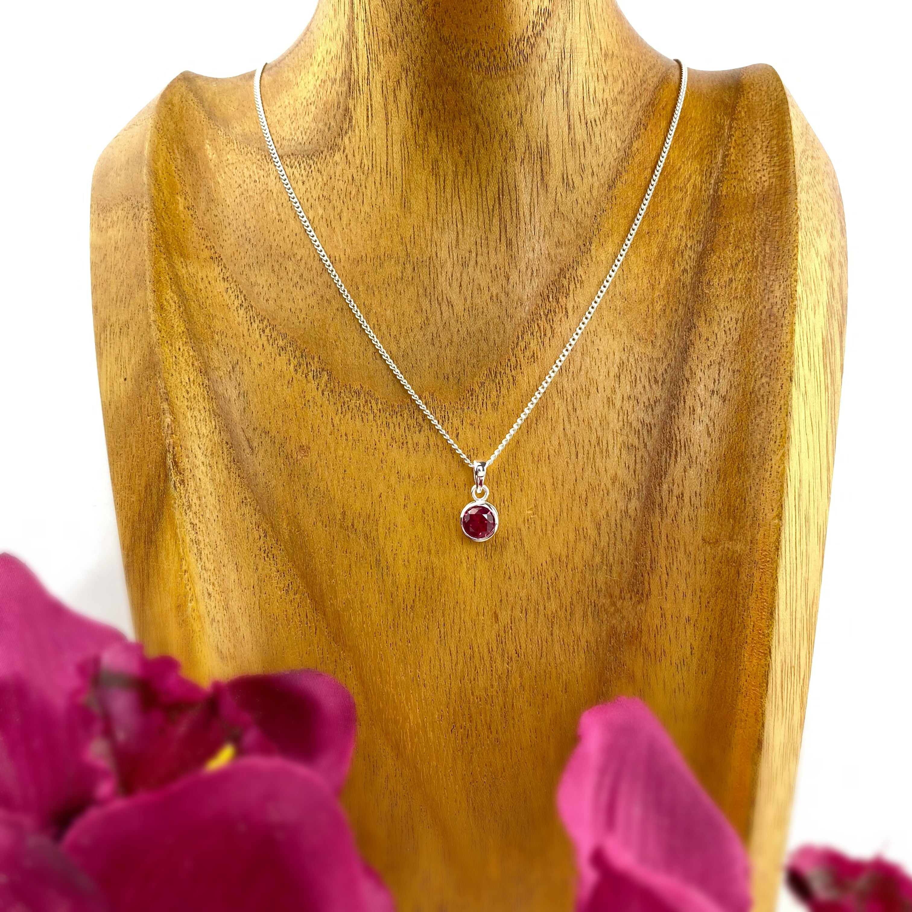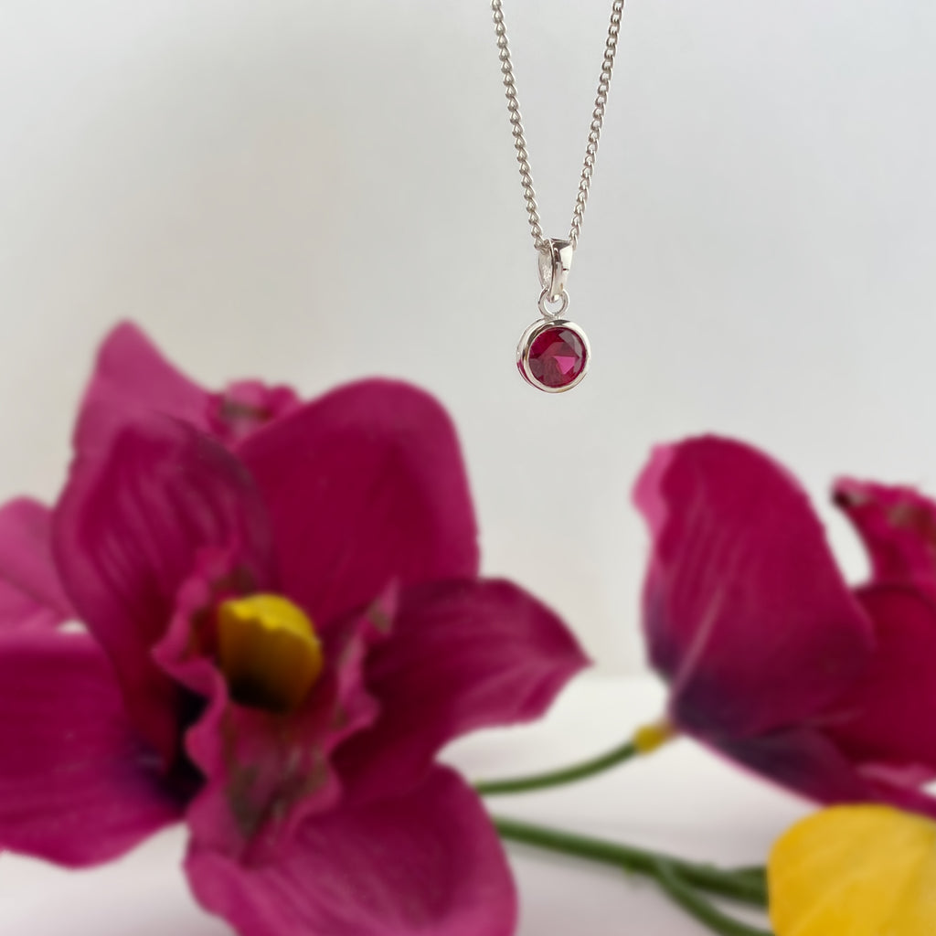 With it's bright, eye catching sparkle this simple Silver set Ruby pink Cubic Zirconia pendant adds an diamond dazzle to everyday looks & makes a perfect gift for a July Birthday.