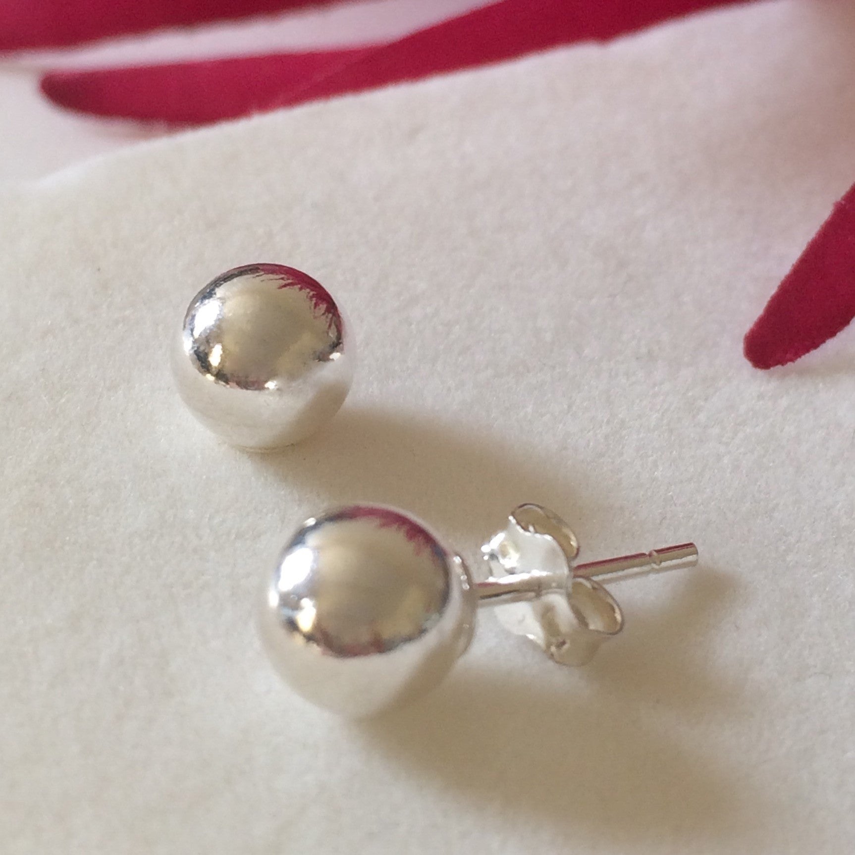 Create a classic look for every occasion with these lovely, simple, high polished Silver, large, spherical stud earrings.