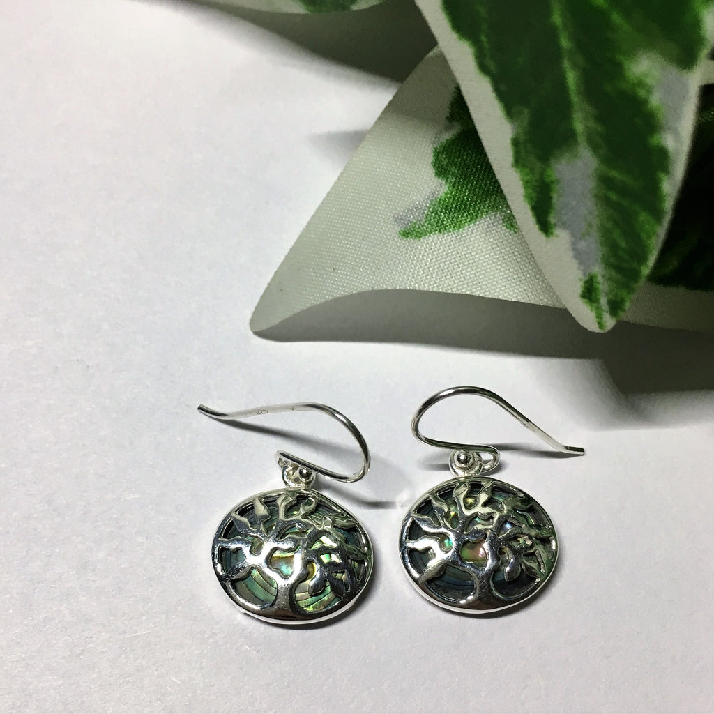 Rooted in the ground but reaching for the stars; these beautiful Sterling Silver earrings are designed to embody the ancient Tree of Life symbolising wisdom, strength and protection made even more stunning with a backdrop of Abalone shell. Rhodium plated for a strong, protected finish.