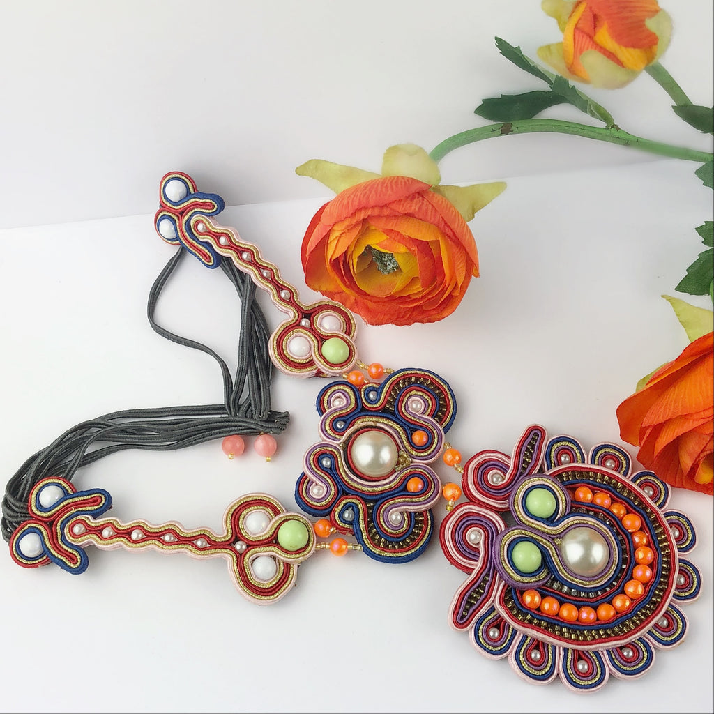 Completely unique and one of a kind, we found this small range of handcrafted unusual statement necklaces and were smitten. Featuring colourful ribbons and beads to make up elaborate patterns and a soft velvet backing this beautiful necklace is a creative work of art.