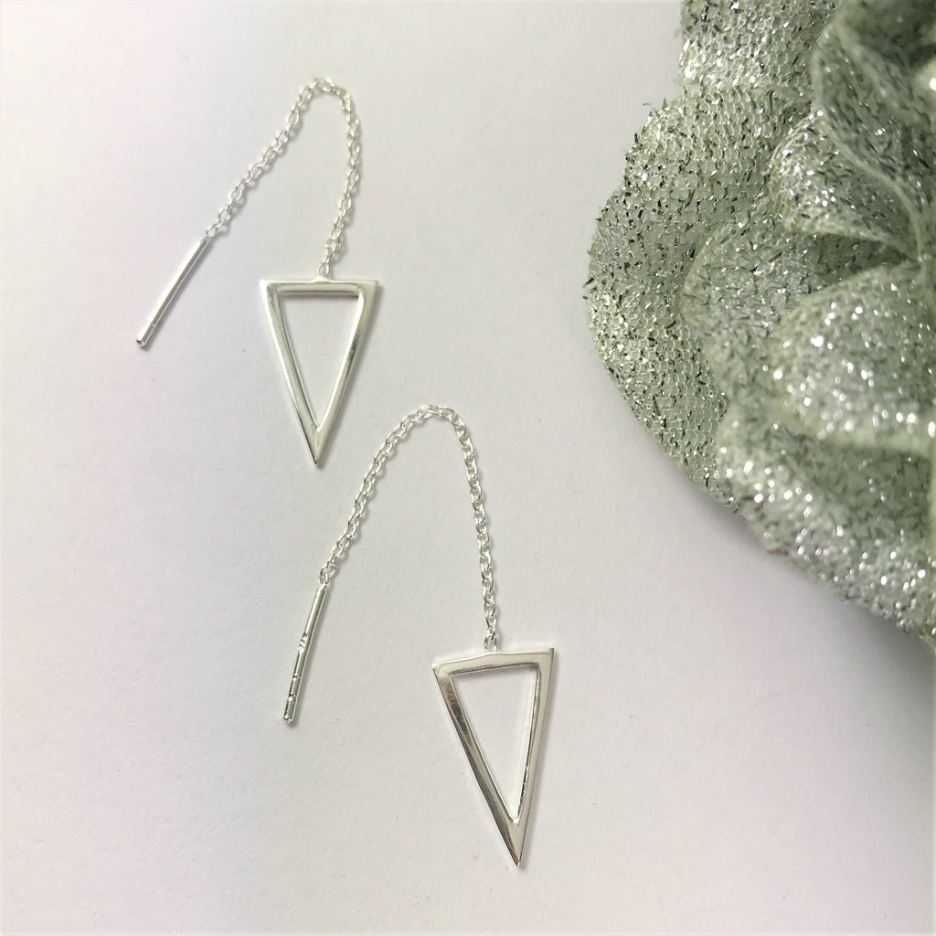 Chic and sharp wear these lightweight, pull through earrings of Silver to point the way with their triangles dangling from your lobes.